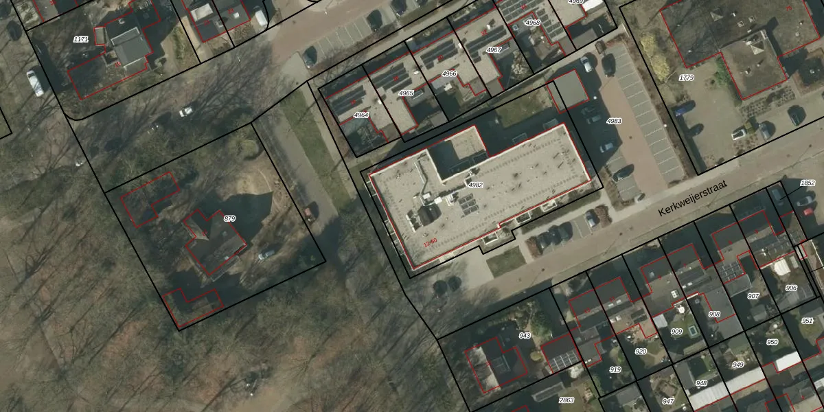 Het perceel waarop Kerkweijerstraat 24 staat heeft een oppervlakte van 1500 m². Dit is een zeer groot perceel. De perceeloppervlakte wordt geregistreerd door het Kadaster. Gedetailleerde informatie over de maten van dit perceel kunt u vinden in het rapport Kadastrale kaart met maatvoering van Kerkweijerstraat 24.