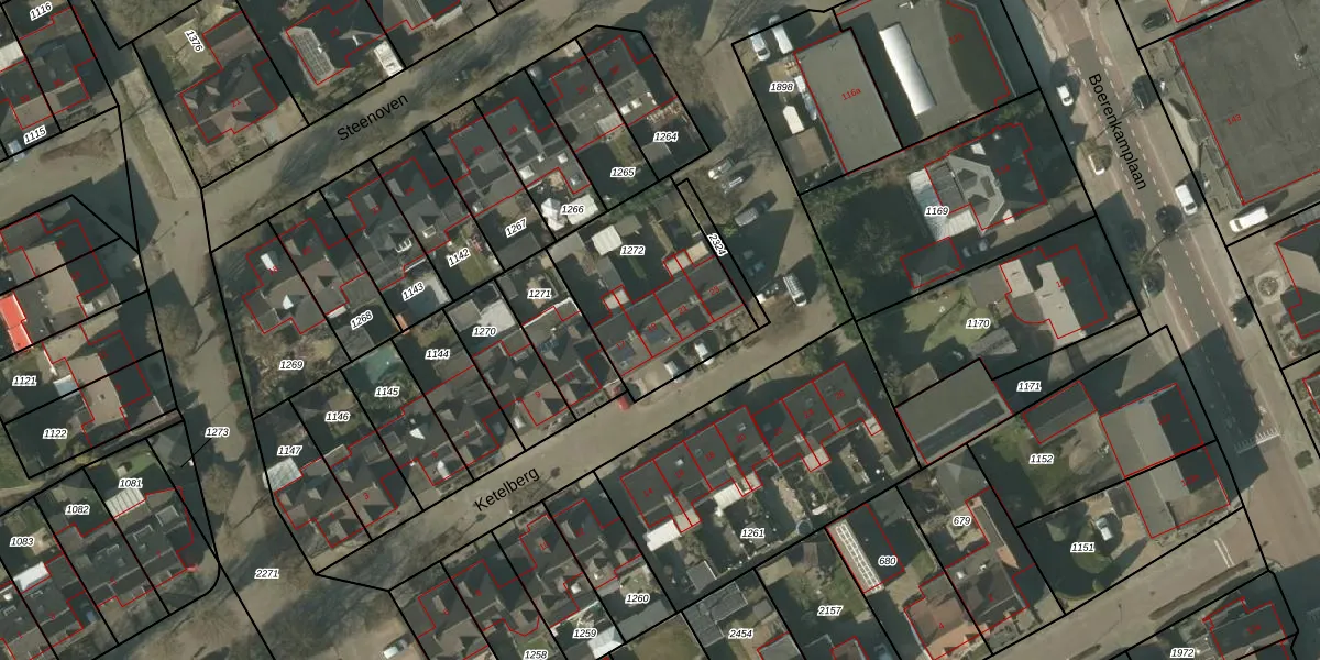 Het perceel waarop Ketelberg 19 staat heeft een oppervlakte van 590 m². Dit is een groot perceel. De perceeloppervlakte wordt geregistreerd door het Kadaster. Gedetailleerde informatie over de maten van dit perceel kunt u vinden in het rapport Kadastrale kaart met maatvoering van Ketelberg 19.