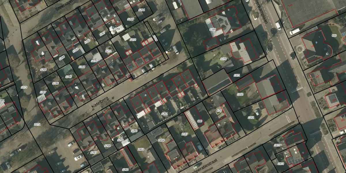 Het perceel waarop Ketelberg 22 staat heeft een oppervlakte van 1100 m². Dit is een zeer groot perceel. De perceeloppervlakte wordt geregistreerd door het Kadaster. Gedetailleerde informatie over de maten van dit perceel kunt u vinden in het rapport Kadastrale kaart met maatvoering van Ketelberg 22.
