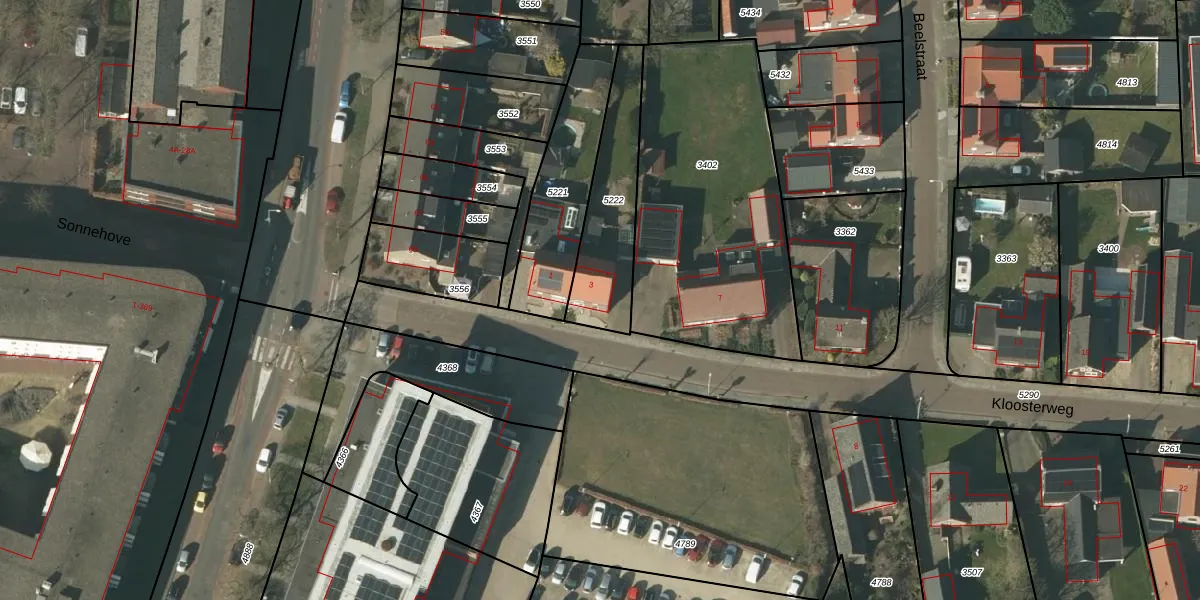 Kloosterweg 3 is gelegen op kadastraal perceel SMR02B5222. Deze kadastrale aanduiding is uniek en wordt gebruikt door het Kadaster om eigendomsrechten en andere zakelijke rechten vast te leggen. Het perceel maakt onderdeel uit van de kadastrale gemeente Someren.