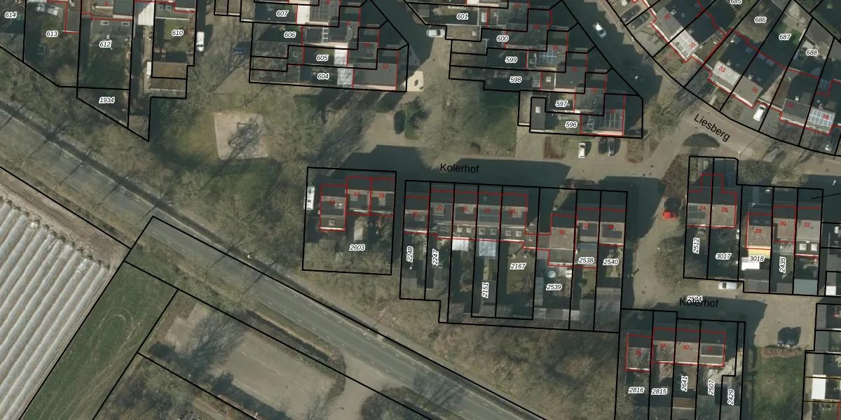 Het perceel waarop Kolerhof 20 staat heeft een oppervlakte van 165 m². Dit is een middelgroot perceel. De perceeloppervlakte wordt geregistreerd door het Kadaster. Gedetailleerde informatie over de maten van dit perceel kunt u vinden in het rapport Kadastrale kaart met maatvoering van Kolerhof 20.