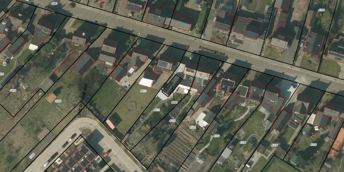 Kommerstraat 48-z is gelegen op kadastraal perceel SMR02B4898. Deze kadastrale aanduiding is uniek en wordt gebruikt door het Kadaster om eigendomsrechten en andere zakelijke rechten vast te leggen. Het perceel maakt onderdeel uit van de kadastrale gemeente Someren.