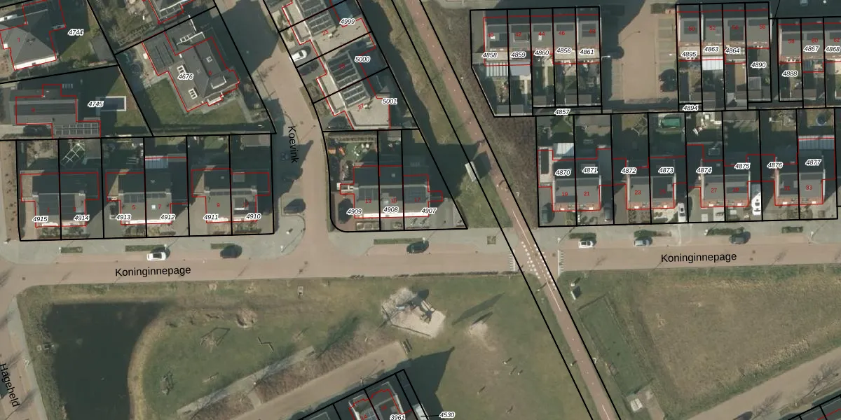 Koninginnepage 17 is gelegen op kadastraal perceel SMR02H4907. Deze kadastrale aanduiding is uniek en wordt gebruikt door het Kadaster om eigendomsrechten en andere zakelijke rechten vast te leggen. Het perceel maakt onderdeel uit van de kadastrale gemeente Someren.