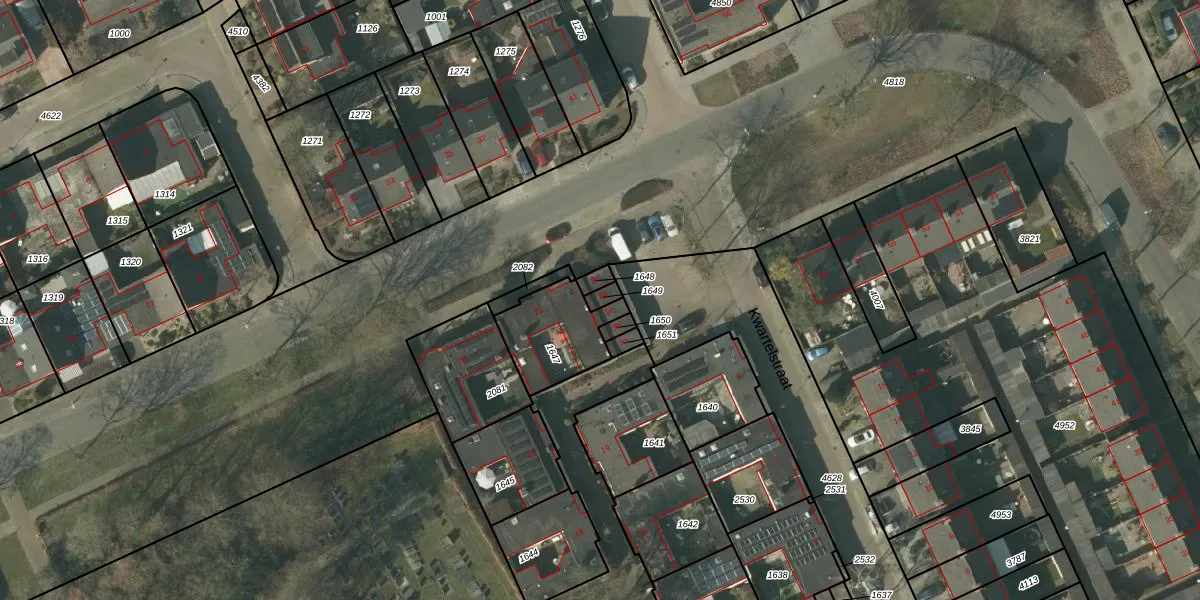 Gebruik de zoekbalk of klik op een perceel voor informatie over de adressen binnen dit perceel.