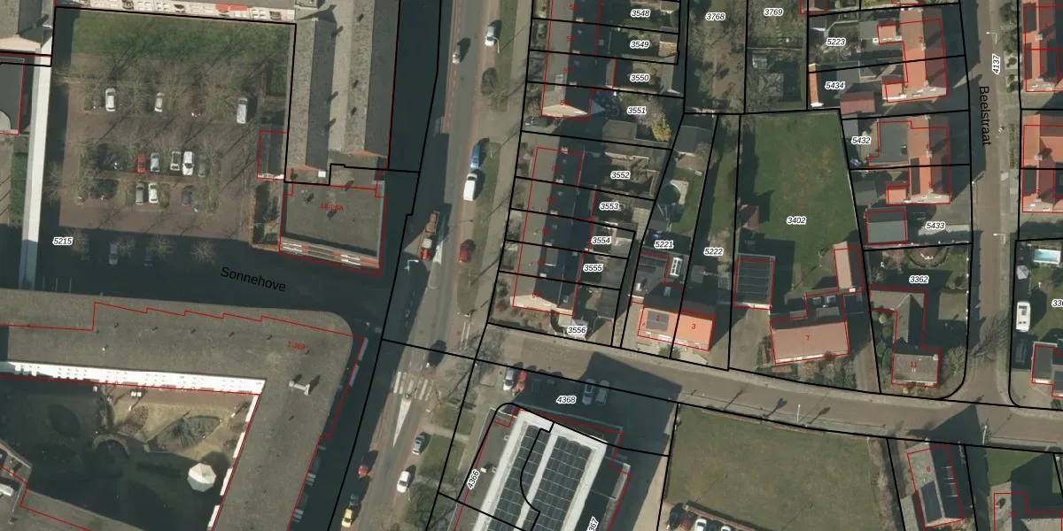 Het perceel waarop het adres ligt is SMR02-B-3555. De afkorting 'SMR02' staat voor kadastrale gemeente Someren. Het perceel is kleiner dan gemiddeld in Someren. Het perceel is 140 m² groot, terwijl het gemiddelde ligt op 6138,94 m². De grootste perceeloppervlakte in de kadastrale gemeente is 2,55 km². De kleinste oppervlakte bedraagt 0 m². Er zijn geen andere adressen aanwezig op het perceel. De huidige grenzen van het perceel zijn digitaal in de Basisregistratie Kadaster (BRK) geregistreerd op 13-12-2007.