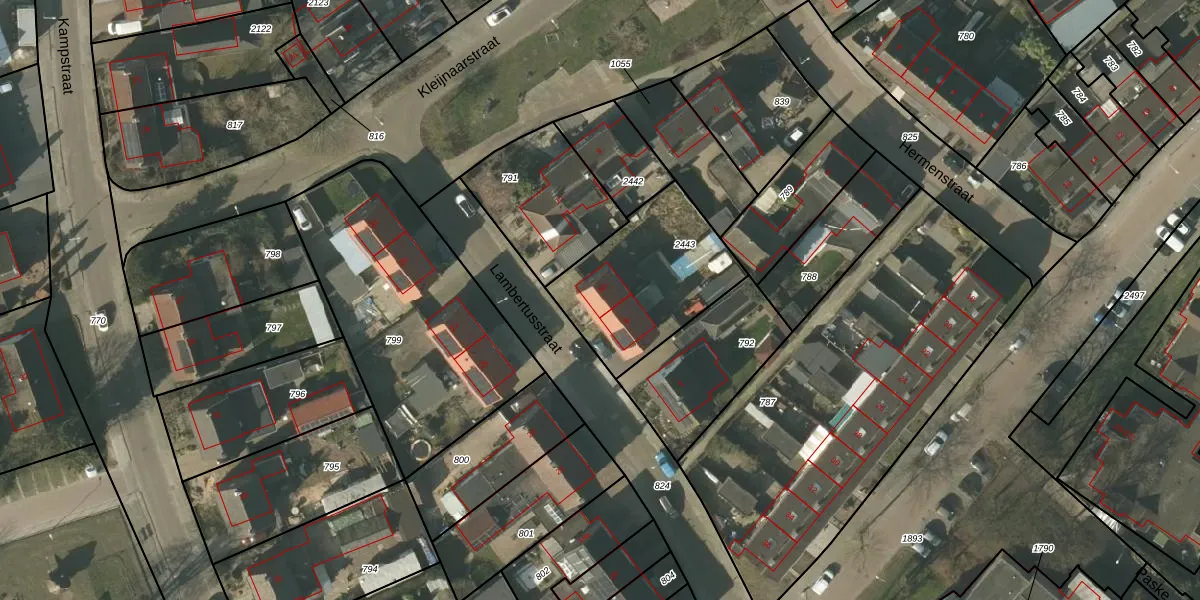 Het perceel waarop Lambertusstraat 10 staat heeft een oppervlakte van 537 m². Dit is een groot perceel. De perceeloppervlakte wordt geregistreerd door het Kadaster. Gedetailleerde informatie over de maten van dit perceel kunt u vinden in het rapport Kadastrale kaart met maatvoering van Lambertusstraat 10.