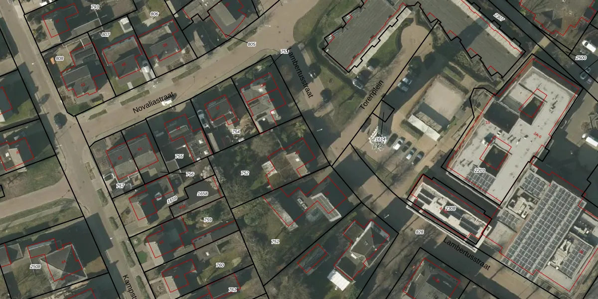 Het perceel waarop Lambertusstraat 13 staat heeft een oppervlakte van 685 m². Dit is een groot perceel. De perceeloppervlakte wordt geregistreerd door het Kadaster. Gedetailleerde informatie over de maten van dit perceel kunt u vinden in het rapport Kadastrale kaart met maatvoering van Lambertusstraat 13.