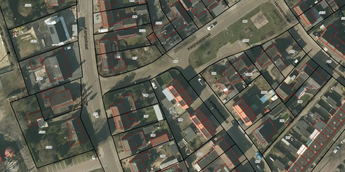 Het perceel waarop Lambertusstraat 31 staat heeft een oppervlakte van 1112 m². Dit is een zeer groot perceel. De perceeloppervlakte wordt geregistreerd door het Kadaster. Gedetailleerde informatie over de maten van dit perceel kunt u vinden in het rapport Kadastrale kaart met maatvoering van Lambertusstraat 31.