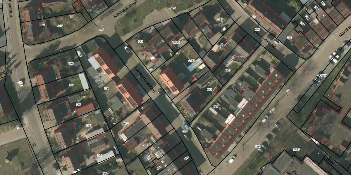 Het perceel waarop Lambertusstraat 8 staat heeft een oppervlakte van 537 m². Dit is een groot perceel. De perceeloppervlakte wordt geregistreerd door het Kadaster. Gedetailleerde informatie over de maten van dit perceel kunt u vinden in het rapport Kadastrale kaart met maatvoering van Lambertusstraat 8.