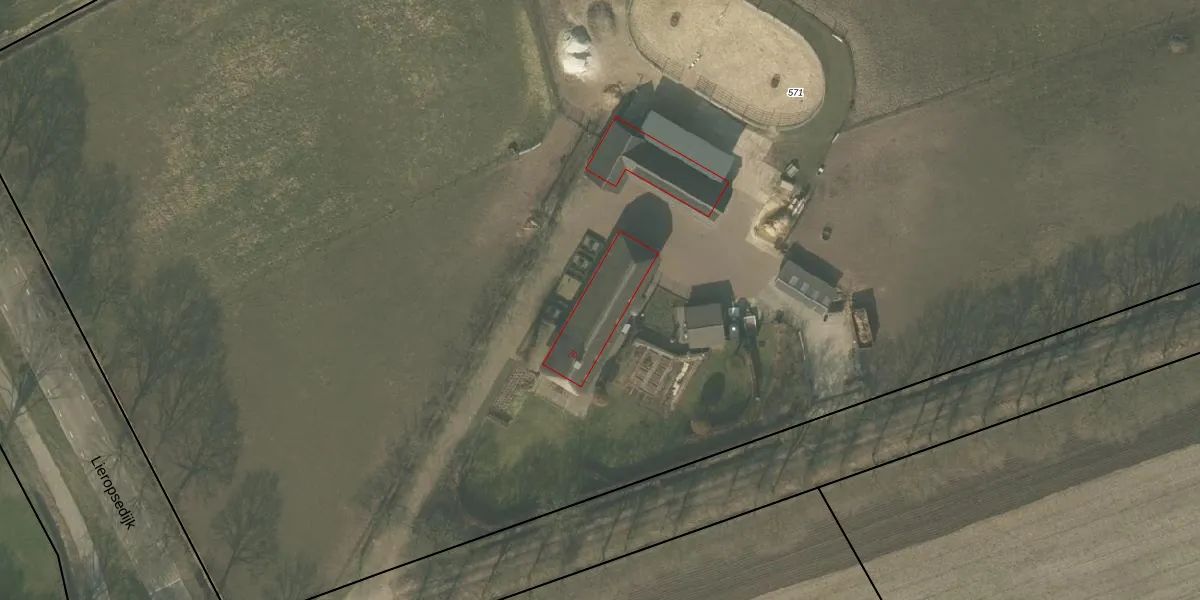 Het perceel waarop Lieropsedijk 70 staat heeft een oppervlakte van 2,3 ha. Dit is een zeer groot perceel. De perceeloppervlakte wordt geregistreerd door het Kadaster. Gedetailleerde informatie over de maten van dit perceel kunt u vinden in het rapport Kadastrale kaart met maatvoering van Lieropsedijk 70.