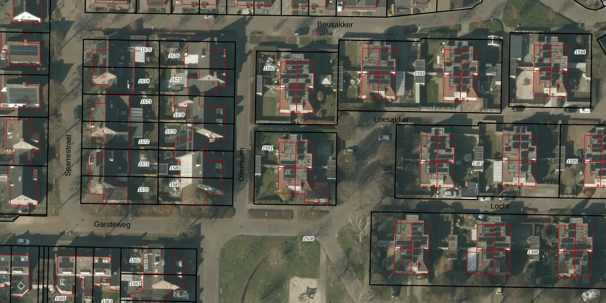 Het perceel waarop Loesakker 1 staat heeft een oppervlakte van 649 m². Dit is een groot perceel. De perceeloppervlakte wordt geregistreerd door het Kadaster. Gedetailleerde informatie over de maten van dit perceel kunt u vinden in het rapport Kadastrale kaart met maatvoering van Loesakker 1.