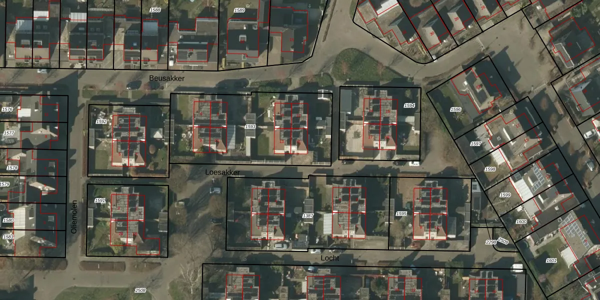 Het perceel waarop Loesakker 15 staat heeft een oppervlakte van 1270 m². Dit is een zeer groot perceel. De perceeloppervlakte wordt geregistreerd door het Kadaster. Gedetailleerde informatie over de maten van dit perceel kunt u vinden in het rapport Kadastrale kaart met maatvoering van Loesakker 15.