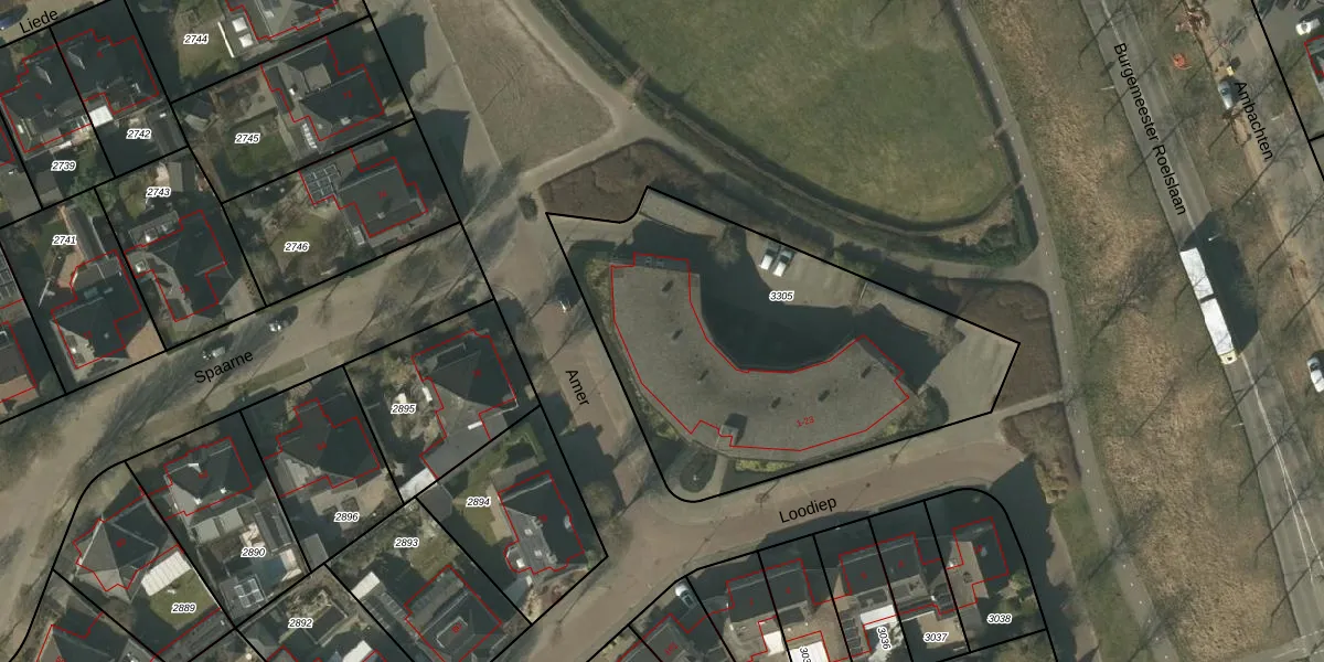 Het perceel waarop Loodiep 15 staat heeft een oppervlakte van 1869 m². Dit is een zeer groot perceel. De perceeloppervlakte wordt geregistreerd door het Kadaster. Gedetailleerde informatie over de maten van dit perceel kunt u vinden in het rapport Kadastrale kaart met maatvoering van Loodiep 15.