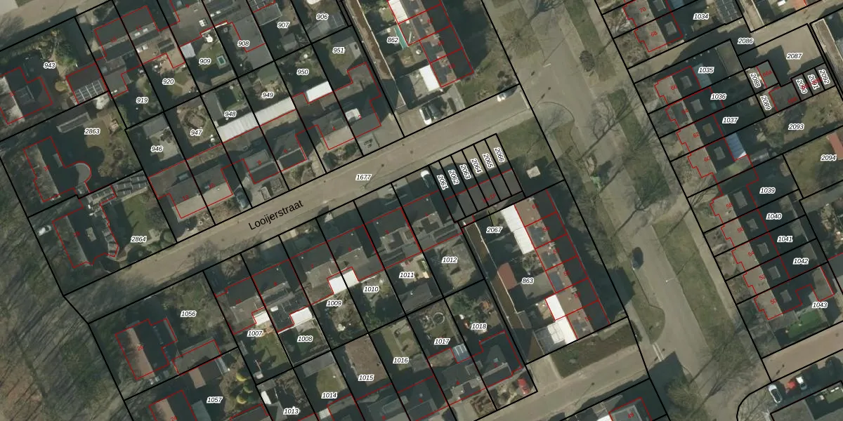 Het perceel waarop Looijerstraat 1 staat heeft een oppervlakte van 310 m². Dit is een groot perceel. De perceeloppervlakte wordt geregistreerd door het Kadaster. Gedetailleerde informatie over de maten van dit perceel kunt u vinden in het rapport Kadastrale kaart met maatvoering van Looijerstraat 1.