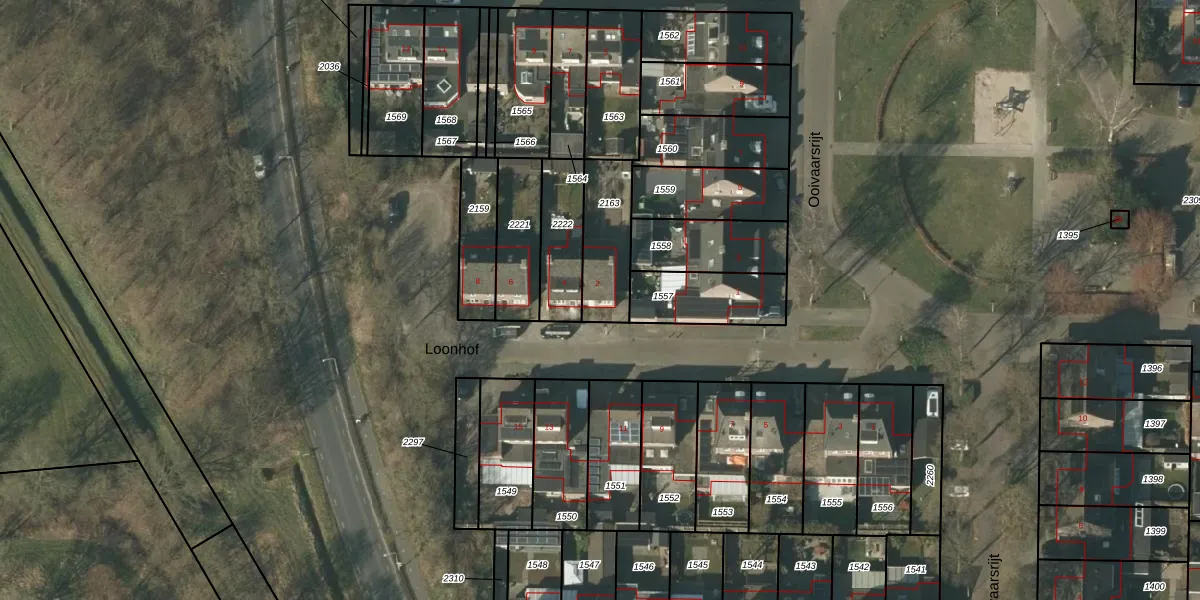 Gebruik de zoekbalk of klik op een perceel voor informatie over de adressen binnen dit perceel.
