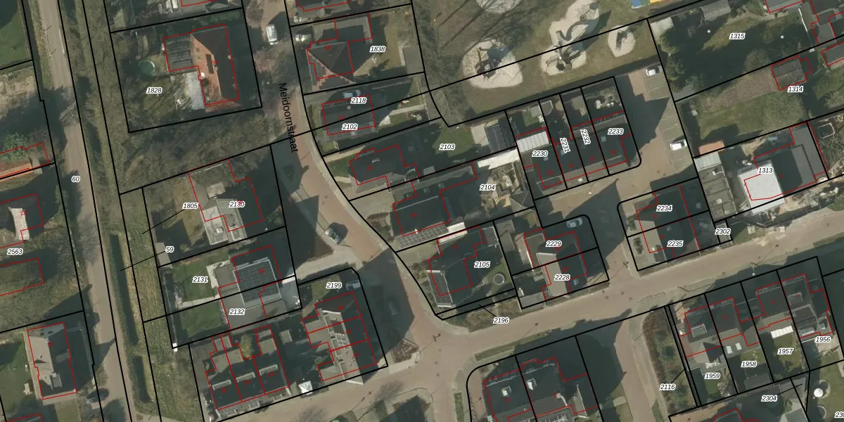Meidoornstraat 45 is gelegen op kadastraal perceel SMR02T2104. Deze kadastrale aanduiding is uniek en wordt gebruikt door het Kadaster om eigendomsrechten en andere zakelijke rechten vast te leggen. Het perceel maakt onderdeel uit van de kadastrale gemeente Someren.