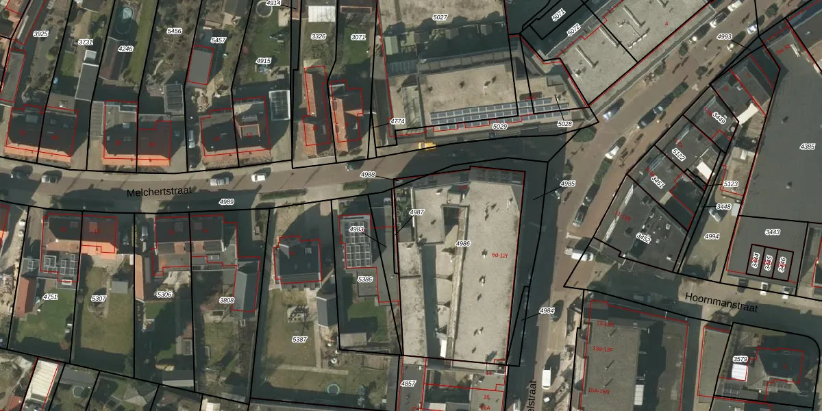 Het perceel waarop Melchertstraat 3 staat heeft een oppervlakte van 1295 m². Dit is een zeer groot perceel. De perceeloppervlakte wordt geregistreerd door het Kadaster. Gedetailleerde informatie over de maten van dit perceel kunt u vinden in het rapport Kadastrale kaart met maatvoering van Melchertstraat 3.