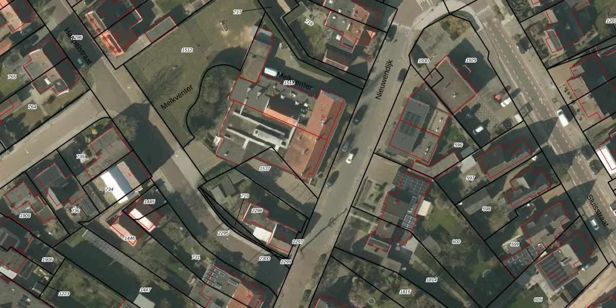 Het perceel waarop Melkventer 16-a staat heeft een oppervlakte van 1815 m². Dit is een zeer groot perceel. De perceeloppervlakte wordt geregistreerd door het Kadaster. Gedetailleerde informatie over de maten van dit perceel kunt u vinden in het rapport Kadastrale kaart met maatvoering van Melkventer 16-a.