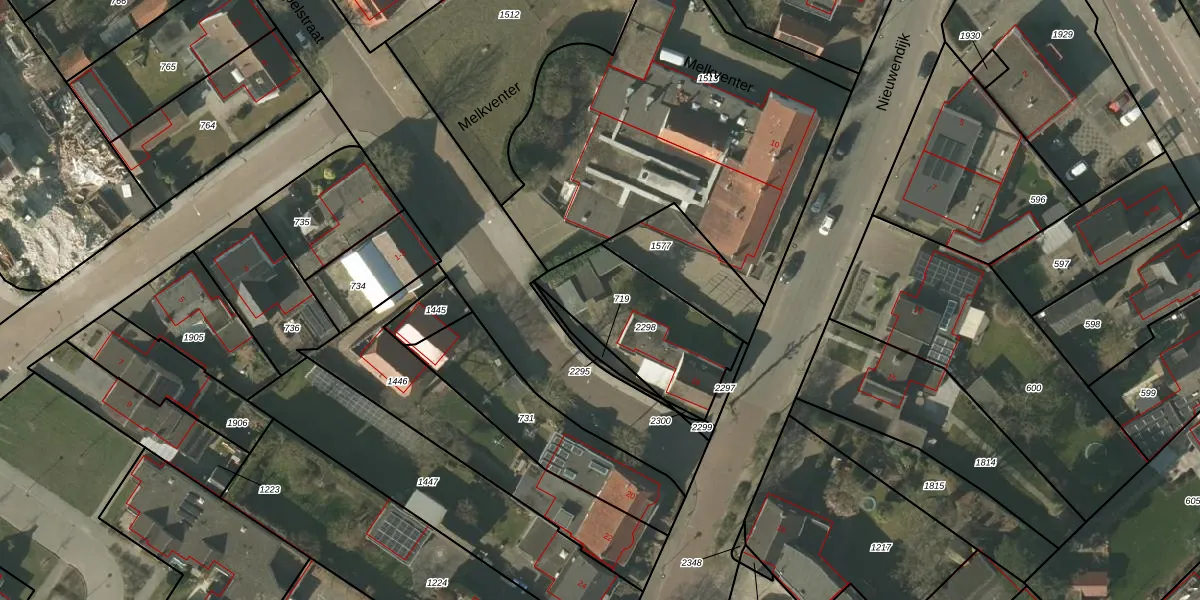 Het perceel waarop Melkventer 2-b staat heeft een oppervlakte van 464 m². Dit is een groot perceel. De perceeloppervlakte wordt geregistreerd door het Kadaster. Gedetailleerde informatie over de maten van dit perceel kunt u vinden in het rapport Kadastrale kaart met maatvoering van Melkventer 2-b.