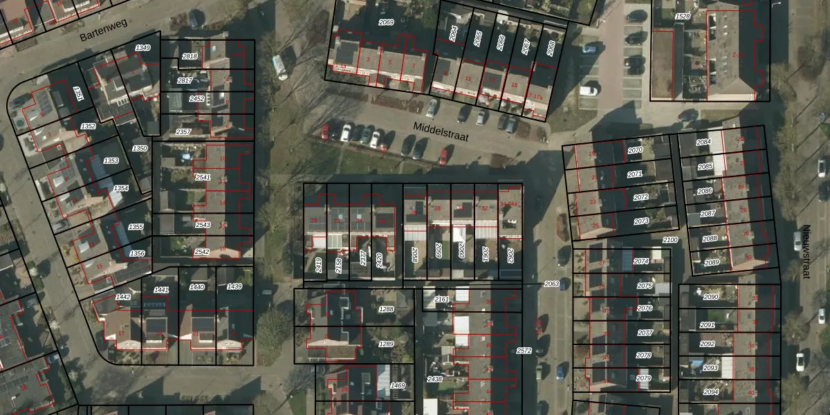 Gebruik de zoekbalk of klik op een perceel voor informatie over de adressen binnen dit perceel.