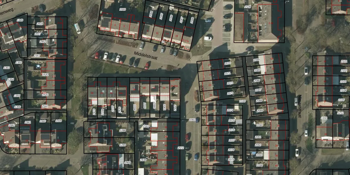 Het perceel waarop Middelstraat 34-a staat heeft een oppervlakte van 137 m². Dit is een middelgroot perceel. De perceeloppervlakte wordt geregistreerd door het Kadaster. Gedetailleerde informatie over de maten van dit perceel kunt u vinden in het rapport Kadastrale kaart met maatvoering van Middelstraat 34-a.