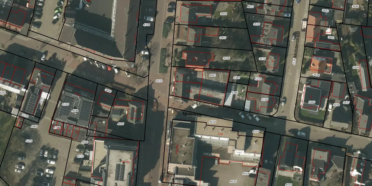 Het perceel waarop Molenstraat 1-a staat heeft een oppervlakte van 532 m². Dit is een groot perceel. De perceeloppervlakte wordt geregistreerd door het Kadaster. Gedetailleerde informatie over de maten van dit perceel kunt u vinden in het rapport Kadastrale kaart met maatvoering van Molenstraat 1-a.