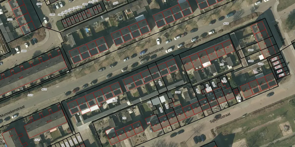 Het perceel waarop Munnekenstraat 30 staat heeft een oppervlakte van 1933 m². Dit is een zeer groot perceel. De perceeloppervlakte wordt geregistreerd door het Kadaster. Gedetailleerde informatie over de maten van dit perceel kunt u vinden in het rapport Kadastrale kaart met maatvoering van Munnekenstraat 30.