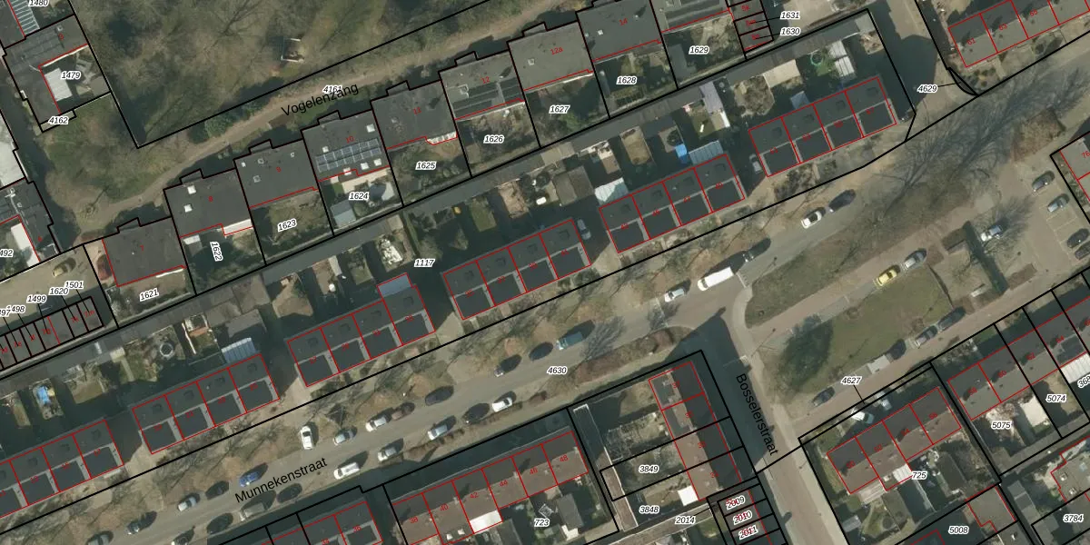 Het perceel waarop Munnekenstraat 39 staat heeft een oppervlakte van 4871 m². Dit is een zeer groot perceel. De perceeloppervlakte wordt geregistreerd door het Kadaster. Gedetailleerde informatie over de maten van dit perceel kunt u vinden in het rapport Kadastrale kaart met maatvoering van Munnekenstraat 39.