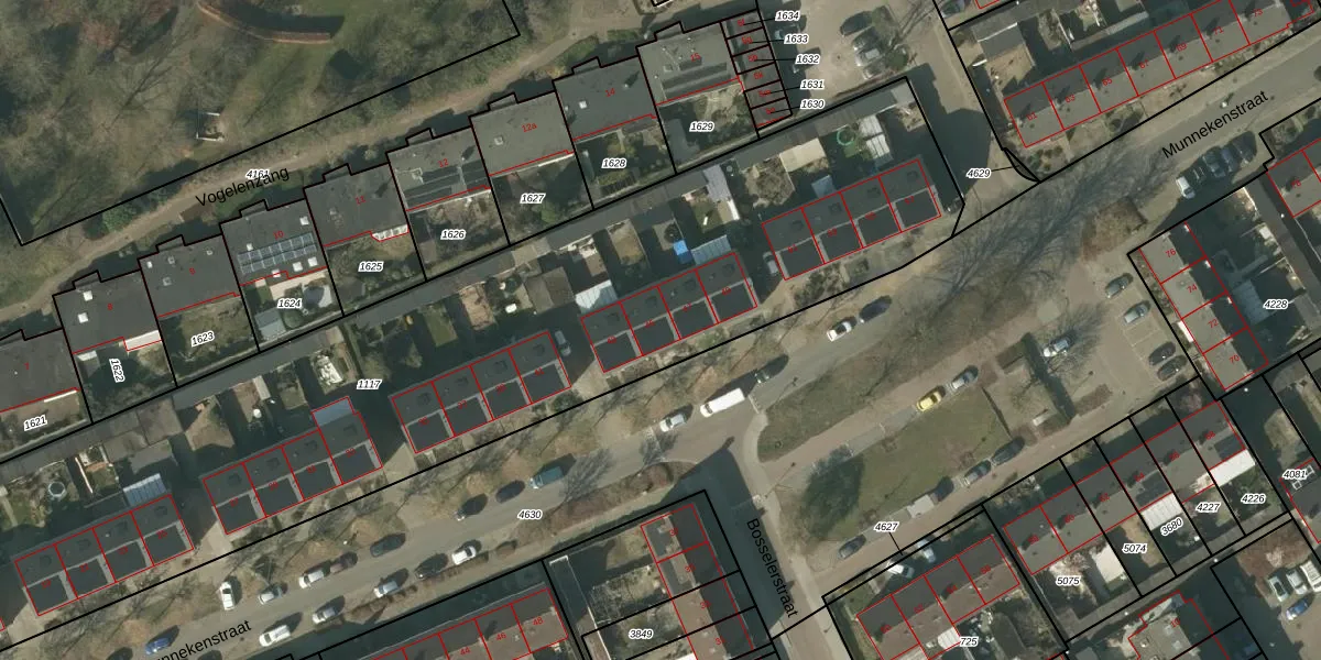 Het perceel waarop Munnekenstraat 45 staat heeft een oppervlakte van 4871 m². Dit is een zeer groot perceel. De perceeloppervlakte wordt geregistreerd door het Kadaster. Gedetailleerde informatie over de maten van dit perceel kunt u vinden in het rapport Kadastrale kaart met maatvoering van Munnekenstraat 45.