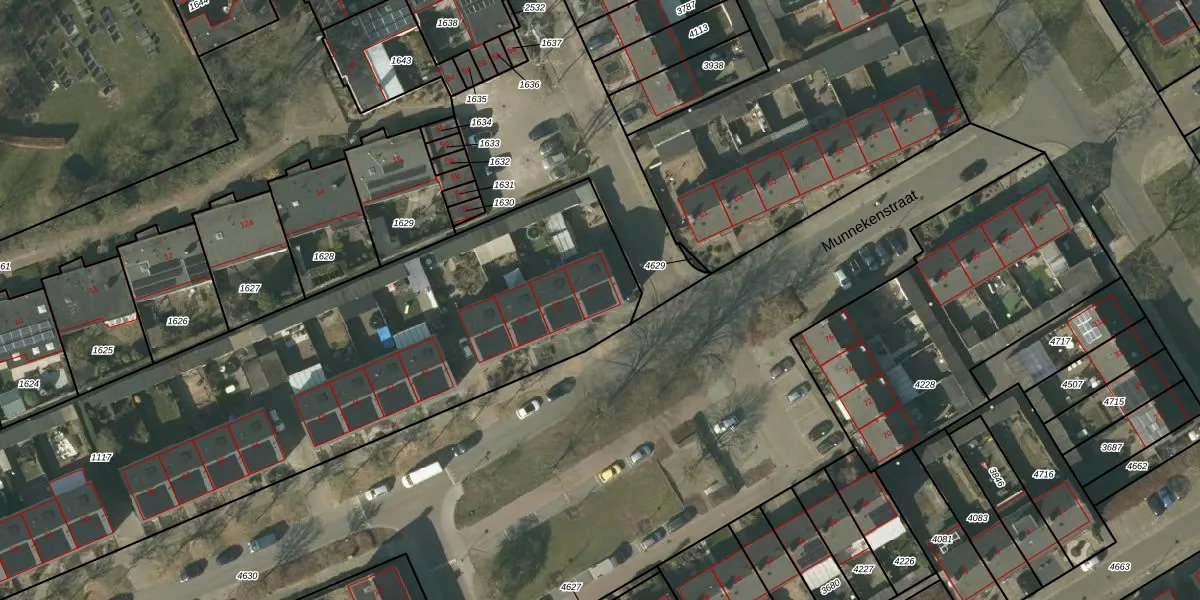 Het perceel waarop Munnekenstraat 57 staat heeft een oppervlakte van 4871 m². Dit is een zeer groot perceel. De perceeloppervlakte wordt geregistreerd door het Kadaster. Gedetailleerde informatie over de maten van dit perceel kunt u vinden in het rapport Kadastrale kaart met maatvoering van Munnekenstraat 57.