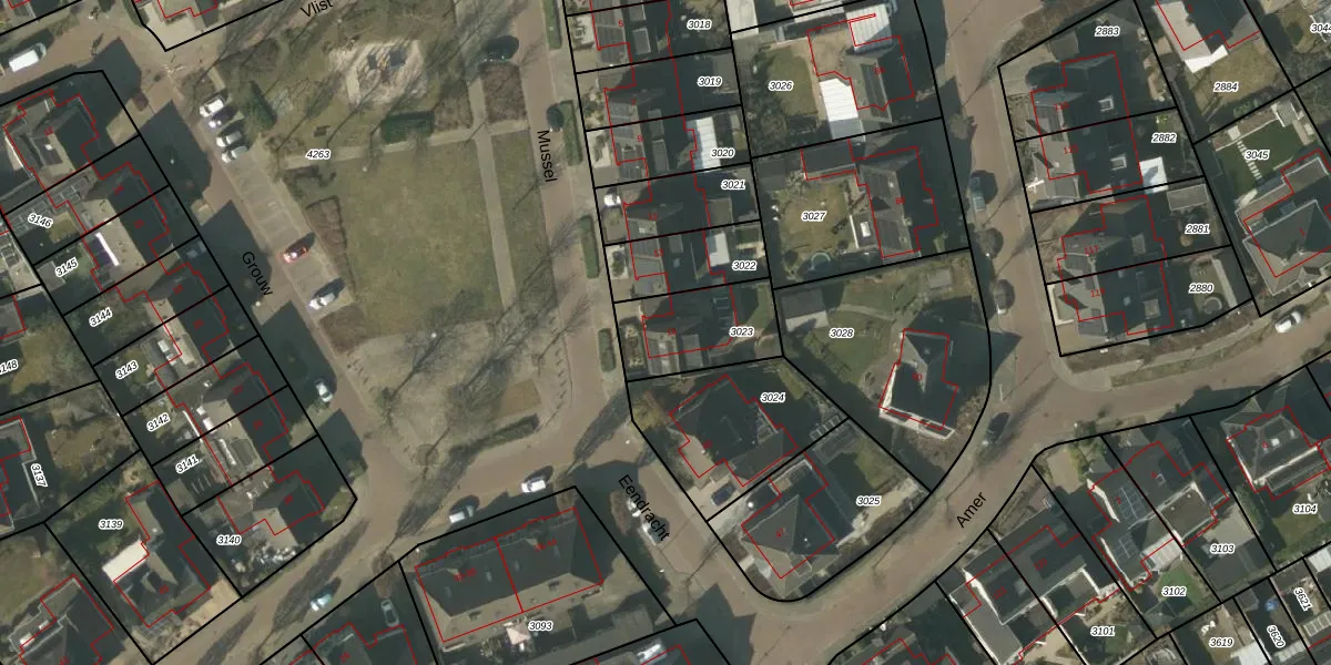 Het perceel waarop Mussel 15 staat heeft een oppervlakte van 288 m². Dit is een middelgroot perceel. De perceeloppervlakte wordt geregistreerd door het Kadaster. Gedetailleerde informatie over de maten van dit perceel kunt u vinden in het rapport Kadastrale kaart met maatvoering van Mussel 15.