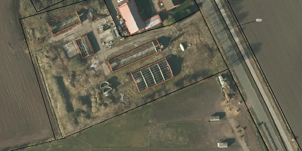 Het perceel waarop Nederweertseweg 18 staat heeft een oppervlakte van 7450 m². Dit is een zeer groot perceel. De perceeloppervlakte wordt geregistreerd door het Kadaster. Gedetailleerde informatie over de maten van dit perceel kunt u vinden in het rapport Kadastrale kaart met maatvoering van Nederweertseweg 18.