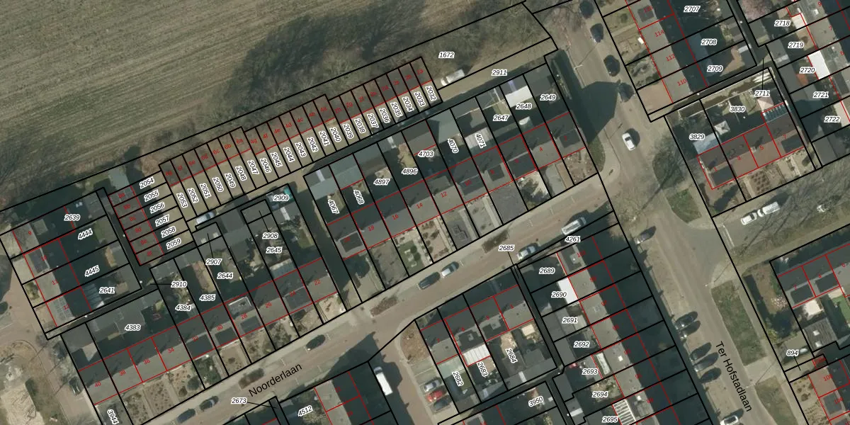 Gebruik de zoekbalk of klik op een perceel voor informatie over de adressen binnen dit perceel.
