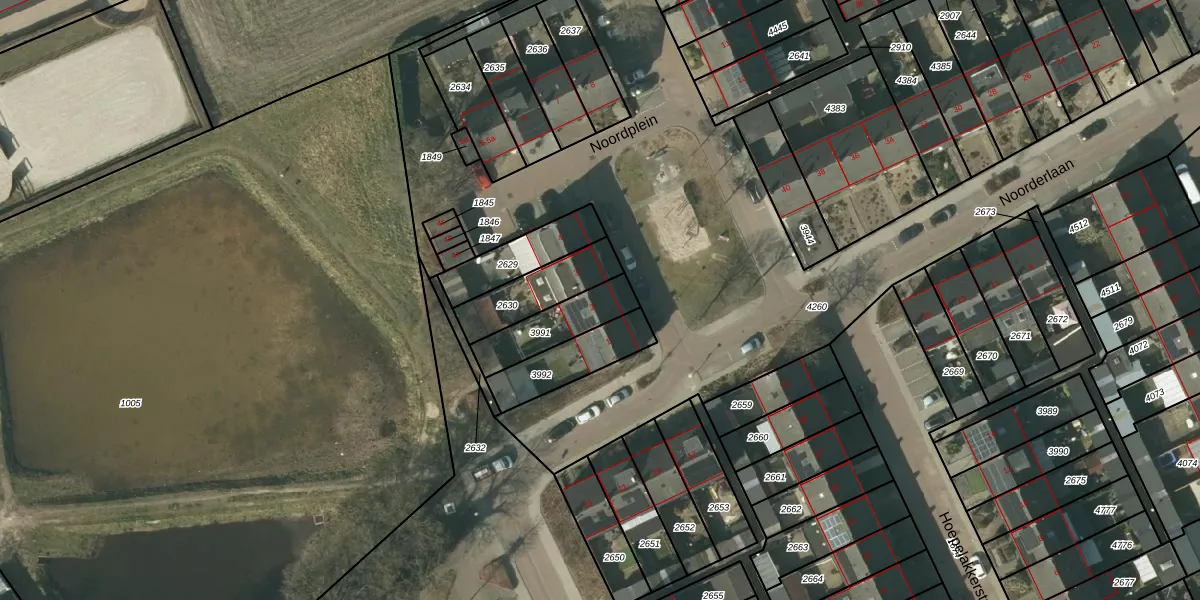 Het perceel waarop Noordplein 2 staat heeft een oppervlakte van 179 m². Dit is een middelgroot perceel. De perceeloppervlakte wordt geregistreerd door het Kadaster. Gedetailleerde informatie over de maten van dit perceel kunt u vinden in het rapport Kadastrale kaart met maatvoering van Noordplein 2.