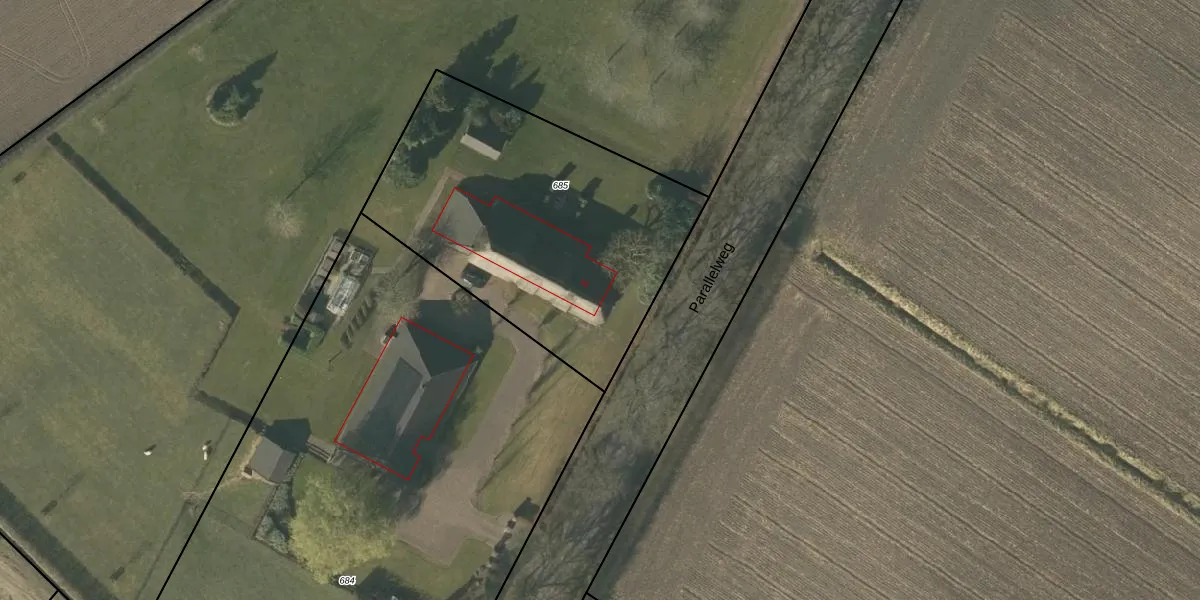 Parallelweg 18 is gelegen op kadastraal perceel SMR02R685. Deze kadastrale aanduiding is uniek en wordt gebruikt door het Kadaster om eigendomsrechten en andere zakelijke rechten vast te leggen. Het perceel maakt onderdeel uit van de kadastrale gemeente Someren.