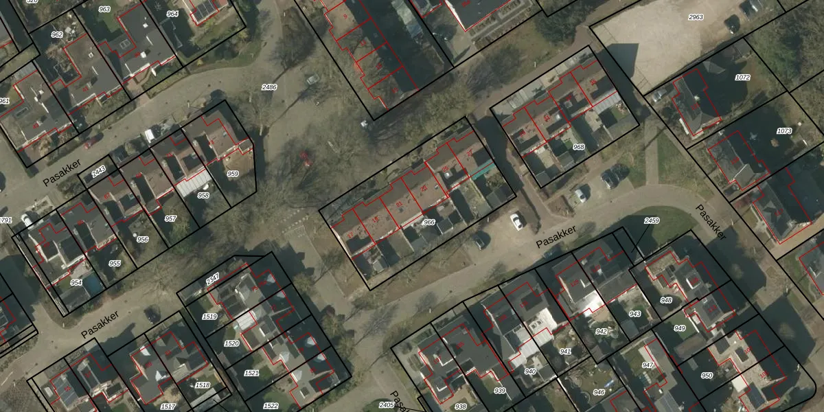 Het perceel waarop Pasakker 21 staat heeft een oppervlakte van 974 m². Dit is een groot perceel. De perceeloppervlakte wordt geregistreerd door het Kadaster. Gedetailleerde informatie over de maten van dit perceel kunt u vinden in het rapport Kadastrale kaart met maatvoering van Pasakker 21.