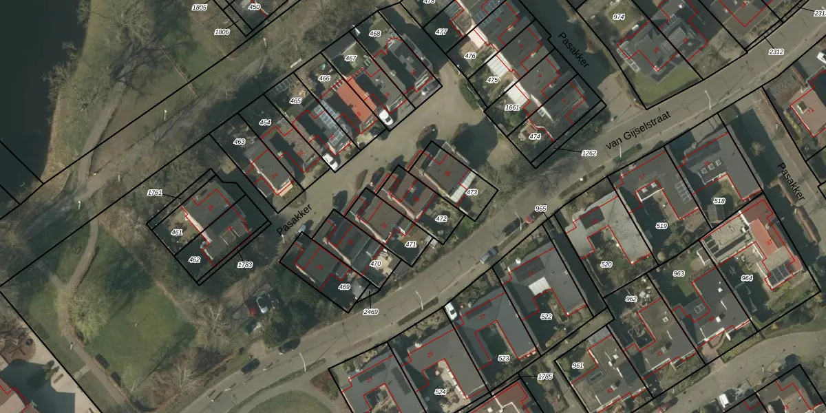 Gebruik de zoekbalk of klik op een perceel voor informatie over de adressen binnen dit perceel.