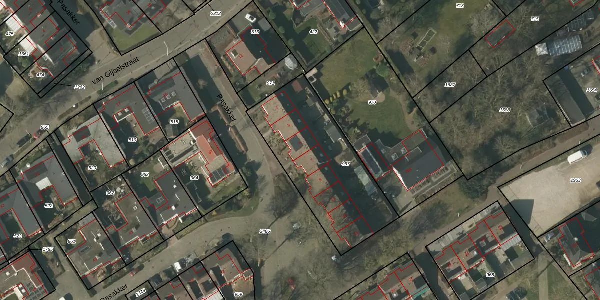 Het perceel waarop Pasakker 5 staat heeft een oppervlakte van 1322 m². Dit is een zeer groot perceel. De perceeloppervlakte wordt geregistreerd door het Kadaster. Gedetailleerde informatie over de maten van dit perceel kunt u vinden in het rapport Kadastrale kaart met maatvoering van Pasakker 5.