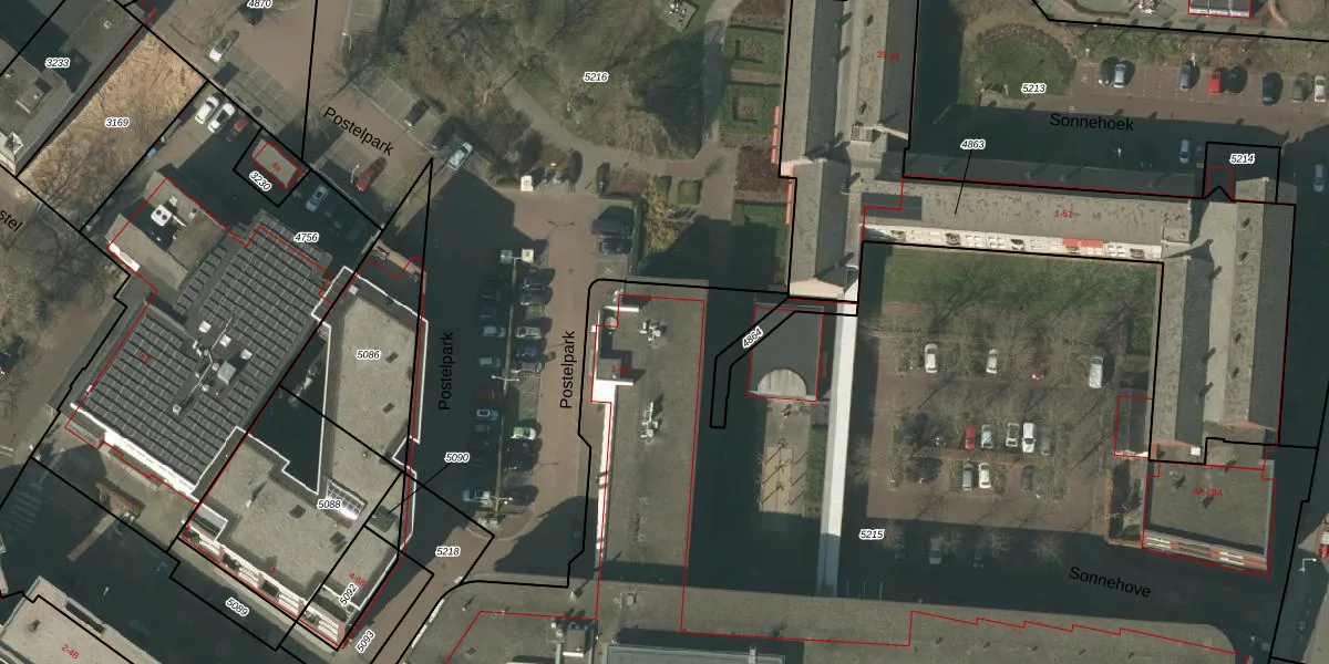 Het perceel waarop Postelpark 15 staat heeft een oppervlakte van 1,2 ha. Dit is een zeer groot perceel. De perceeloppervlakte wordt geregistreerd door het Kadaster. Gedetailleerde informatie over de maten van dit perceel kunt u vinden in het rapport Kadastrale kaart met maatvoering van Postelpark 15.