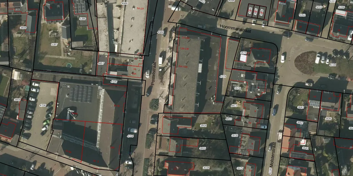 Postelstraat 15-g is gelegen op kadastraal perceel SMR02B4779. Deze kadastrale aanduiding is uniek en wordt gebruikt door het Kadaster om eigendomsrechten en andere zakelijke rechten vast te leggen. Het perceel maakt onderdeel uit van de kadastrale gemeente Someren.