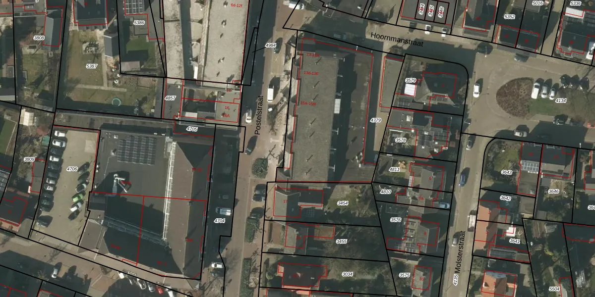 Het perceel waarop Postelstraat 15-h staat heeft een oppervlakte van 1633 m². Dit is een zeer groot perceel. De perceeloppervlakte wordt geregistreerd door het Kadaster. Gedetailleerde informatie over de maten van dit perceel kunt u vinden in het rapport Kadastrale kaart met maatvoering van Postelstraat 15-h.