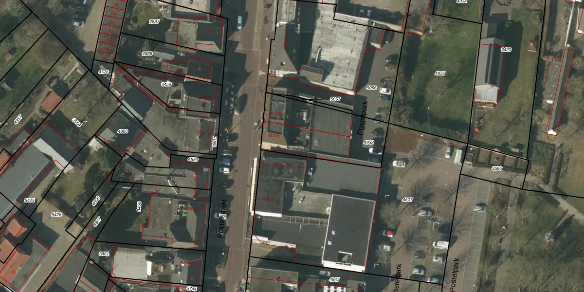 Postelstraat 33-b is gelegen op kadastraal perceel SMR02B4938. Deze kadastrale aanduiding is uniek en wordt gebruikt door het Kadaster om eigendomsrechten en andere zakelijke rechten vast te leggen. Het perceel maakt onderdeel uit van de kadastrale gemeente Someren.