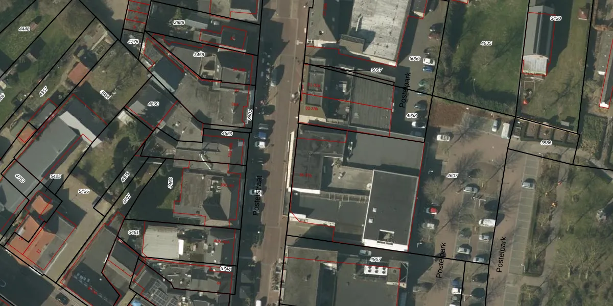 Postelstraat 35 is gelegen op kadastraal perceel SMR02B4607. Deze kadastrale aanduiding is uniek en wordt gebruikt door het Kadaster om eigendomsrechten en andere zakelijke rechten vast te leggen. Het perceel maakt onderdeel uit van de kadastrale gemeente Someren.