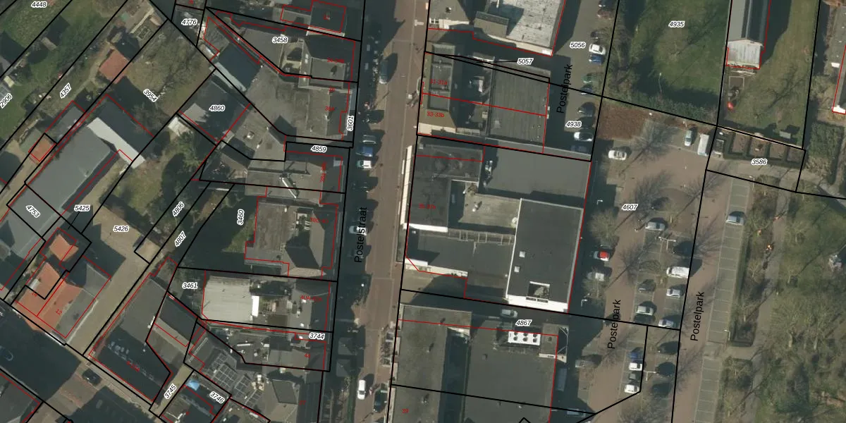 Het perceel waarop Postelstraat 37-a staat heeft een oppervlakte van 2855 m². Dit is een zeer groot perceel. De perceeloppervlakte wordt geregistreerd door het Kadaster. Gedetailleerde informatie over de maten van dit perceel kunt u vinden in het rapport Kadastrale kaart met maatvoering van Postelstraat 37-a.
