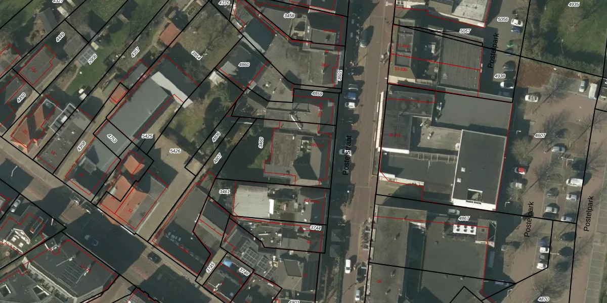 Het perceel waarop Postelstraat 38-d staat heeft een oppervlakte van 690 m². Dit is een groot perceel. De perceeloppervlakte wordt geregistreerd door het Kadaster. Gedetailleerde informatie over de maten van dit perceel kunt u vinden in het rapport Kadastrale kaart met maatvoering van Postelstraat 38-d.