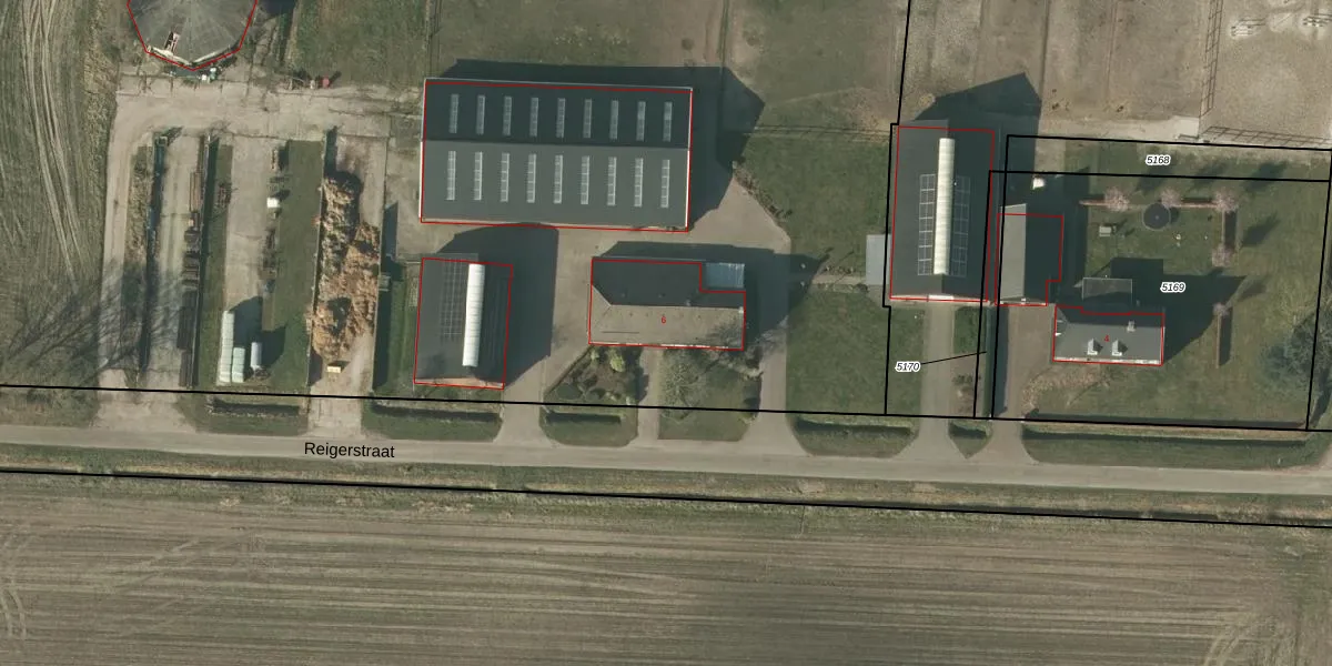 Het perceel waarop Reigerstraat 6 staat heeft een oppervlakte van 4,4 ha. Dit is een zeer groot perceel. De perceeloppervlakte wordt geregistreerd door het Kadaster. Gedetailleerde informatie over de maten van dit perceel kunt u vinden in het rapport Kadastrale kaart met maatvoering van Reigerstraat 6.
