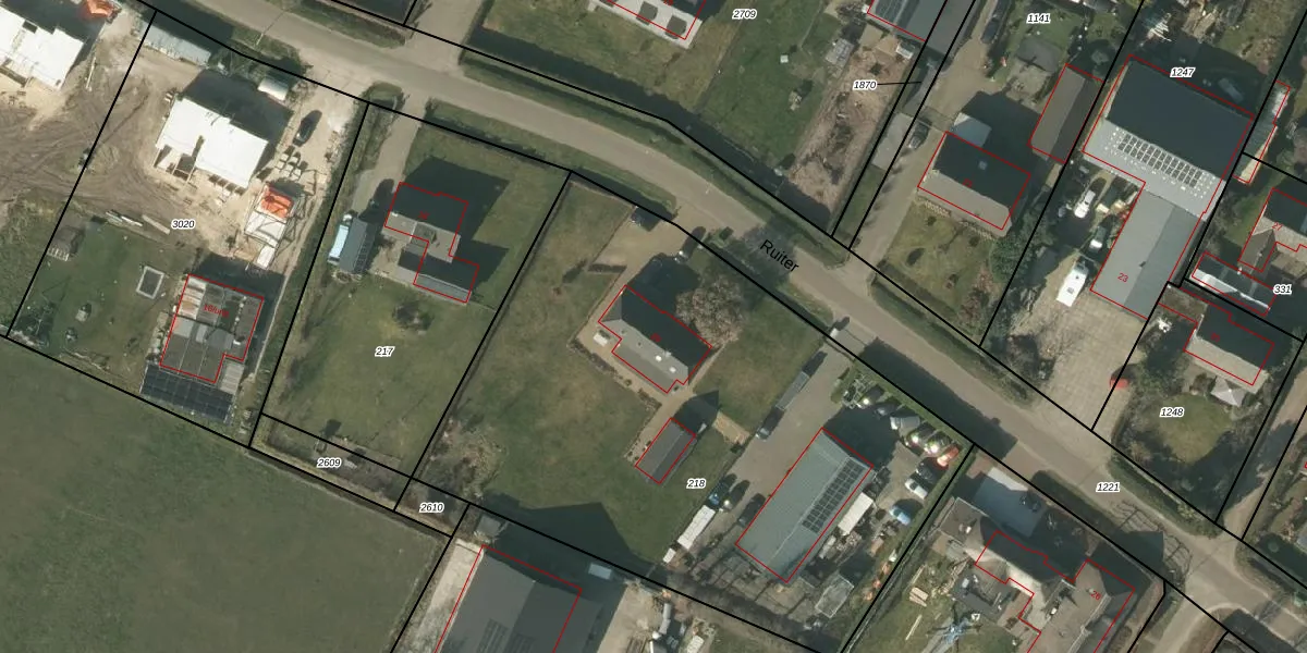 Het perceel waarop Ruiter 20 staat heeft een oppervlakte van 3420 m². Dit is een zeer groot perceel. De perceeloppervlakte wordt geregistreerd door het Kadaster. Gedetailleerde informatie over de maten van dit perceel kunt u vinden in het rapport Kadastrale kaart met maatvoering van Ruiter 20.