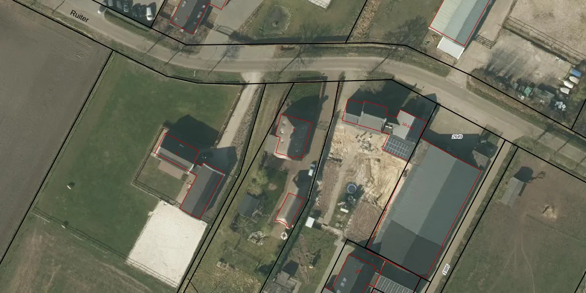 Het perceel waarop Ruiter 8 staat heeft een oppervlakte van 4225 m². Dit is een zeer groot perceel. De perceeloppervlakte wordt geregistreerd door het Kadaster. Gedetailleerde informatie over de maten van dit perceel kunt u vinden in het rapport Kadastrale kaart met maatvoering van Ruiter 8.