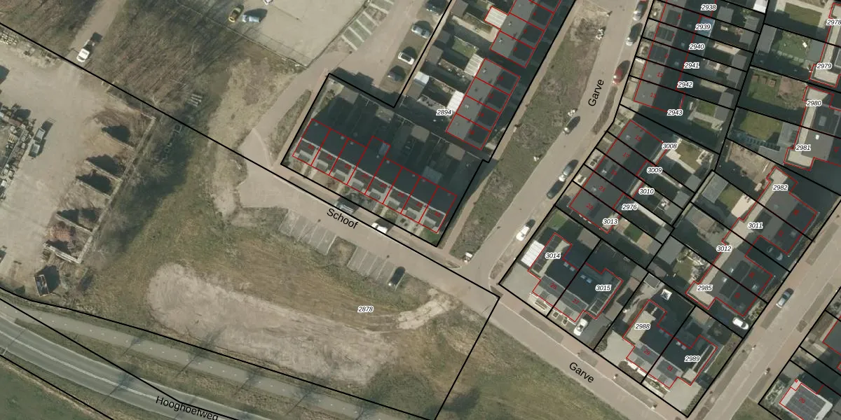 Het perceel waarop Schoof 31 staat heeft een oppervlakte van 2175 m². Dit is een zeer groot perceel. De perceeloppervlakte wordt geregistreerd door het Kadaster. Gedetailleerde informatie over de maten van dit perceel kunt u vinden in het rapport Kadastrale kaart met maatvoering van Schoof 31.