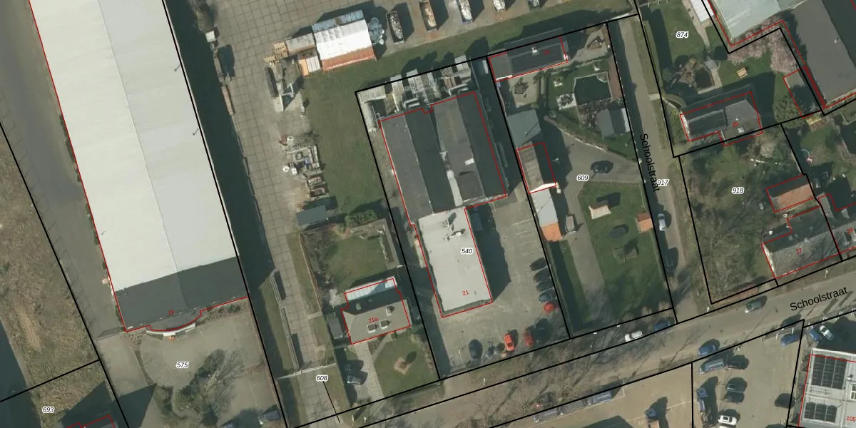 Het perceel waarop Schoolstraat 21 staat heeft een oppervlakte van 2250 m². Dit is een zeer groot perceel. De perceeloppervlakte wordt geregistreerd door het Kadaster. Gedetailleerde informatie over de maten van dit perceel kunt u vinden in het rapport Kadastrale kaart met maatvoering van Schoolstraat 21.